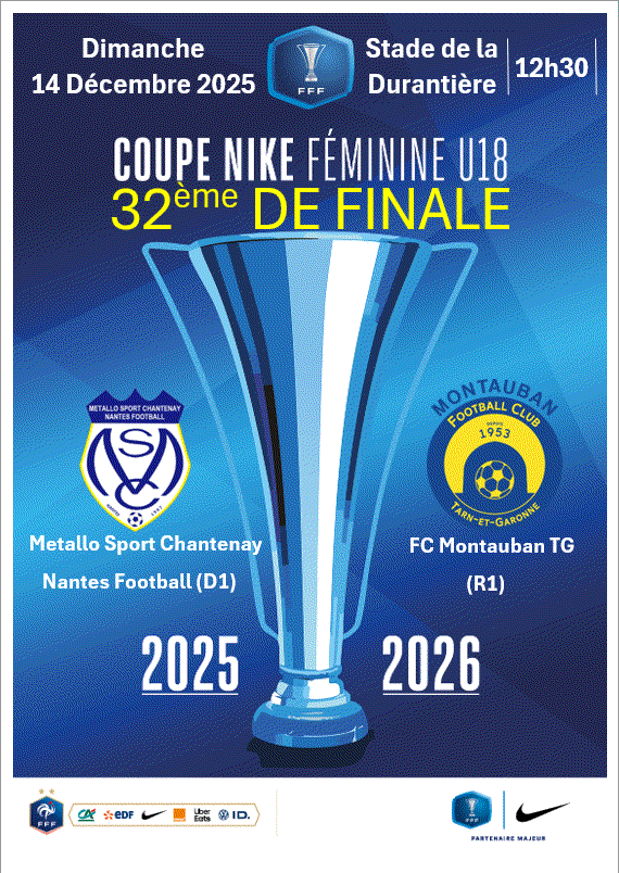 27/11 14:50 - Club : Et ce sera Montauban FC TG (R1) pour nos U18F en Coupe Nike !